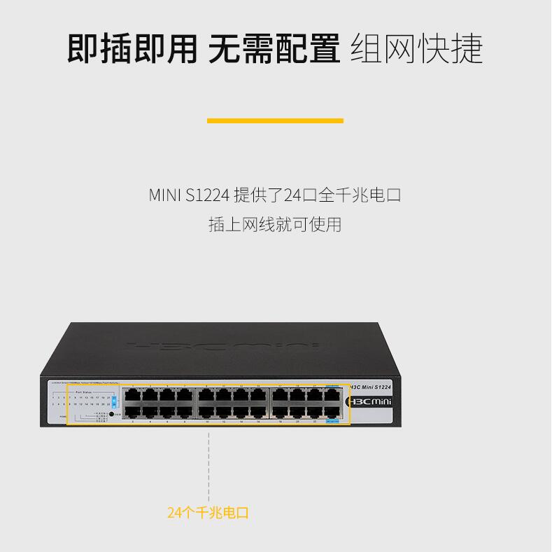 H3C華三Mini S1224 24口全千兆交換機企業(yè)級無管理非網(wǎng)管網(wǎng)絡(luò)交換器監(jiān)控防雷分線器替代S1324G