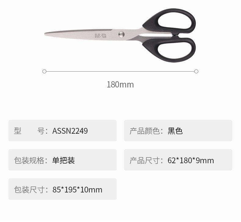 晨光(M&G)文具黑色180mm經(jīng)典辦公剪刀 學(xué)生手工剪紙刀 普惠型家用剪子 單把裝ASSN2249