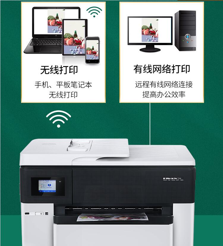 惠普A3彩色照片打印機(jī)復(fù)印一體機(jī)7740噴墨自動(dòng)雙面A4辦公家用無線